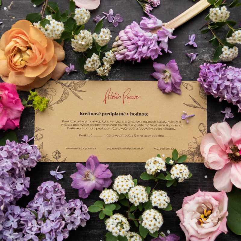 2. Nahlásiť číslo kvetinového predplatného a jeho hodnotu.
